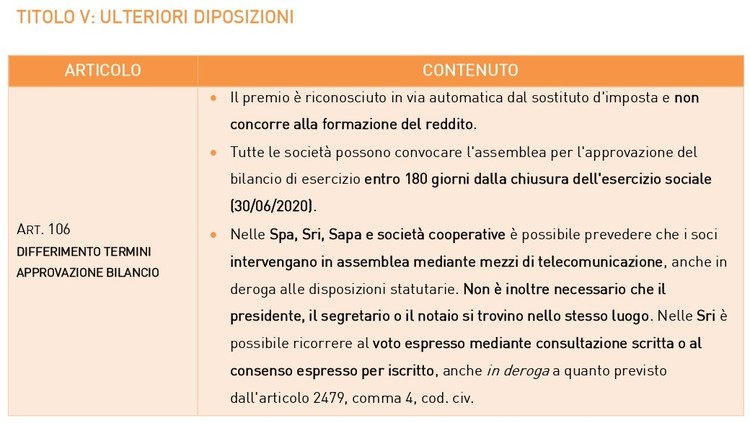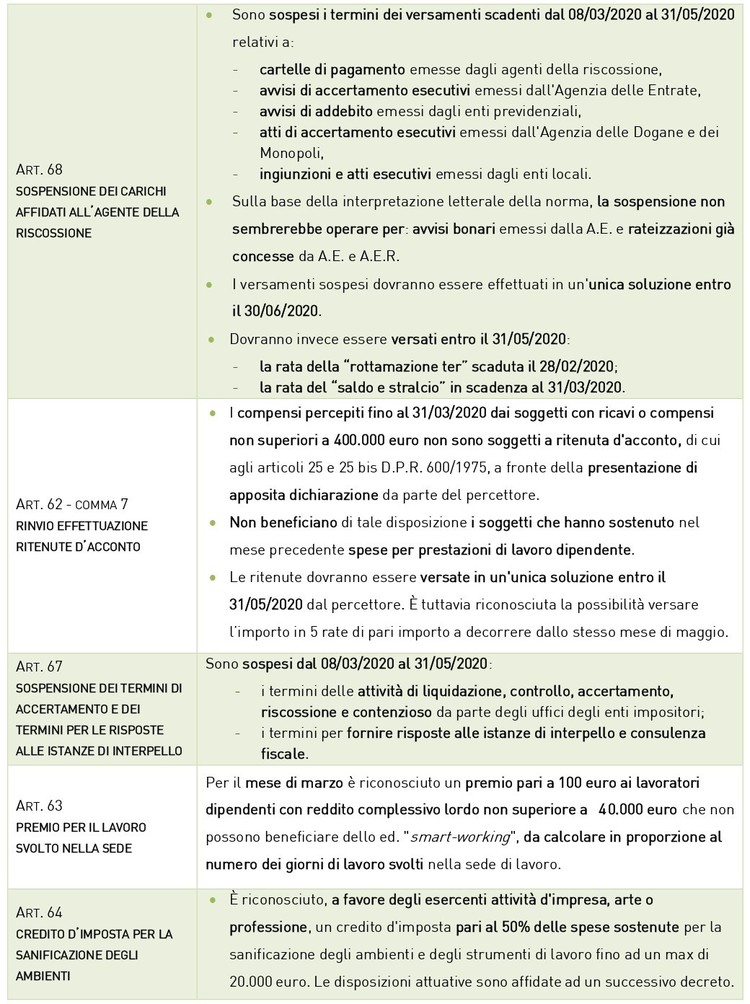 Per agevolarne la lettura, abbiamo redatto una TAVOLA DI SINTESI delle misure ritenute maggiormente significative (2 – 3 – 4), lasciando a successivi approfondimenti altri aspetti d’interesse.