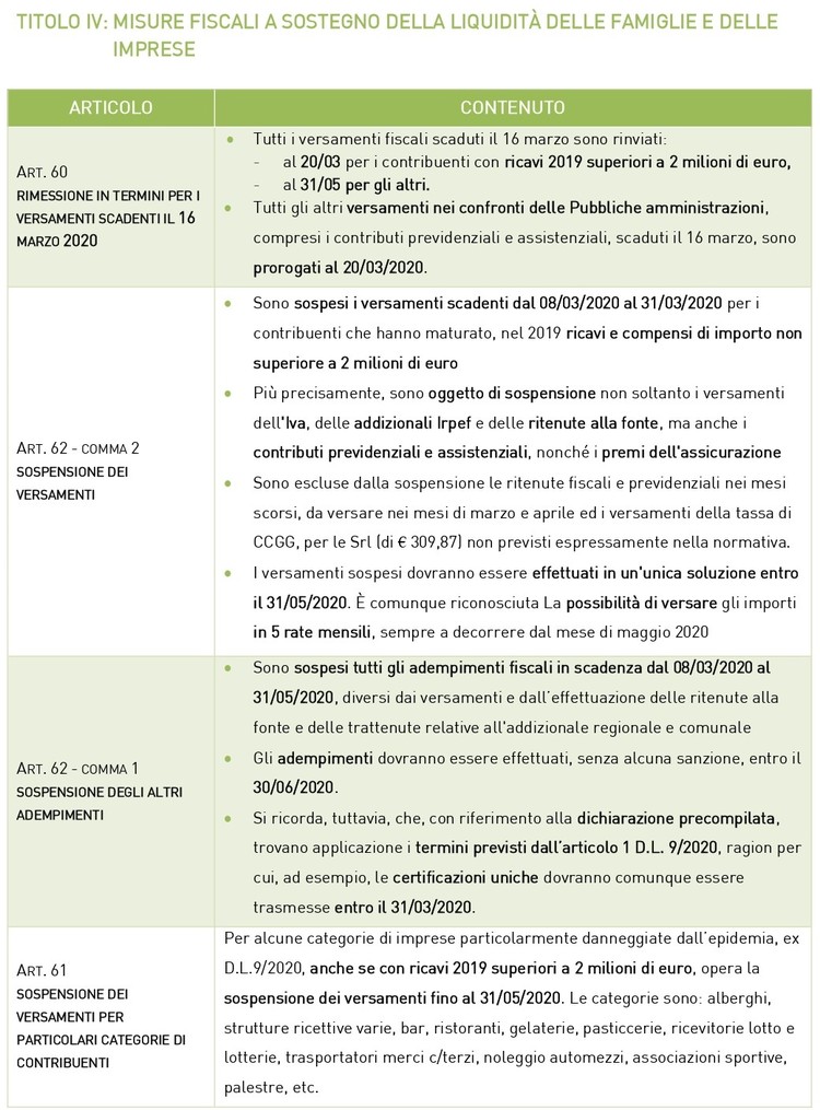 In vigore dal 17 marzo, in seguito alla pubblicazione in Gazzetta Ufficiale, il Decreto-Legge n.18 interviene su CINQUE PRINCIPALI FRONTI: