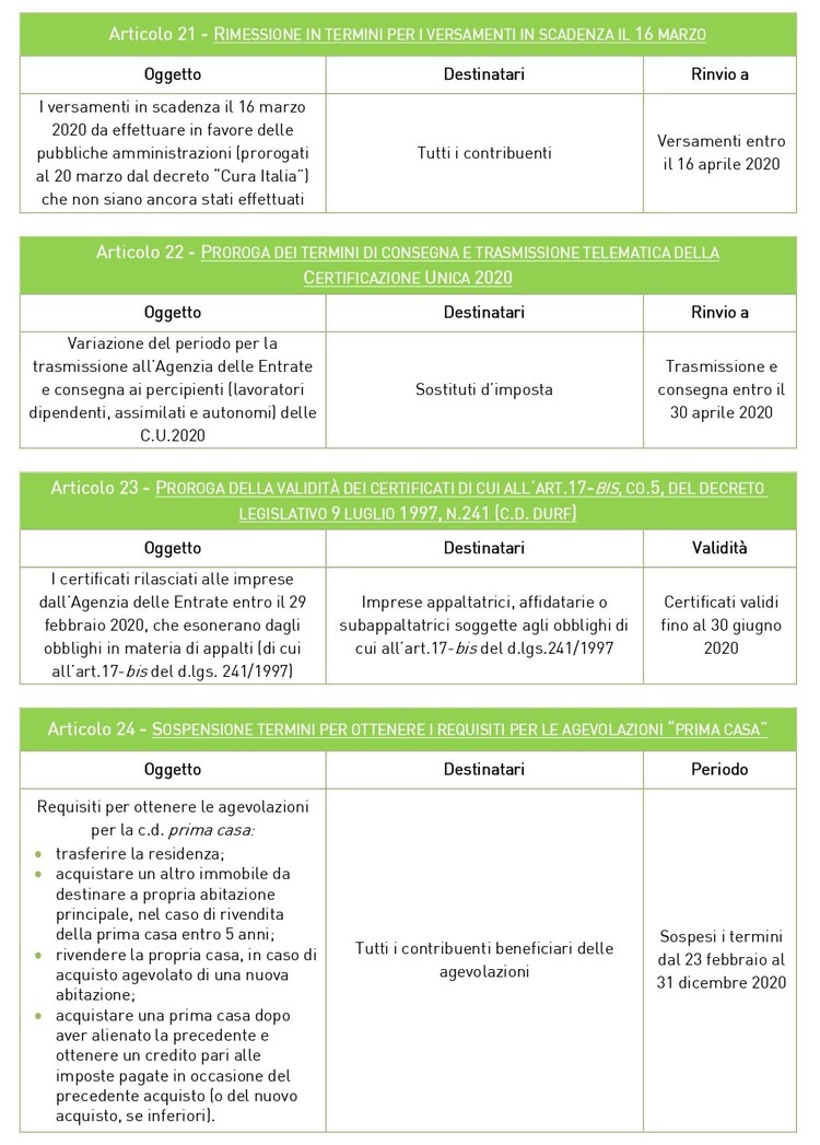Pubblicato in Gazzetta Ufficiale lo scorso 8 aprile, in vigore dal 9 aprile 2020, il CAPO IV del Decreto riscrive il quadro delle scadenze fiscali e contributive di aprile e maggio 2020.