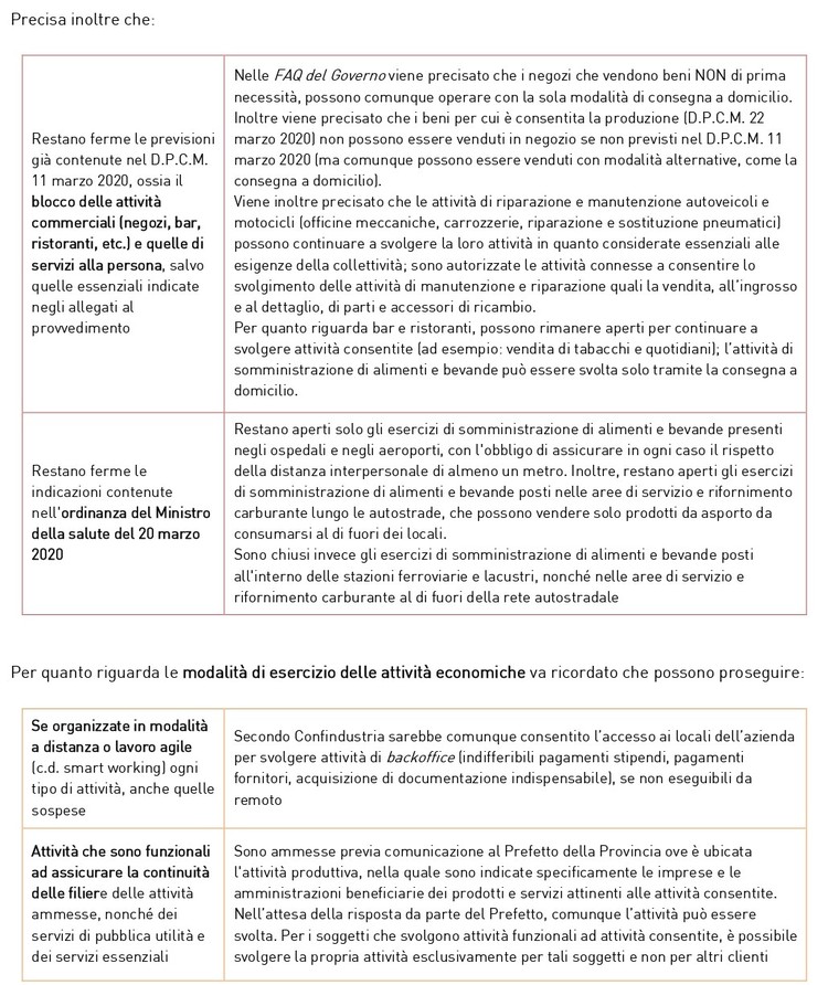 - Ulteriori chiarimenti al Dpcm 22/03/2020 (in seguito agli aggiornamenti del MISE) con l’aiuto delle FAQ di Confindustria e le FAQ del Governo