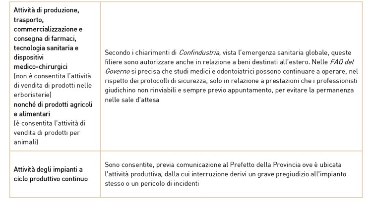 Il dpcm 22 marzo 2020 ha disposto la chiusura di tutte le attività produttive industriali e commerciali, con le seguenti eccezioni: