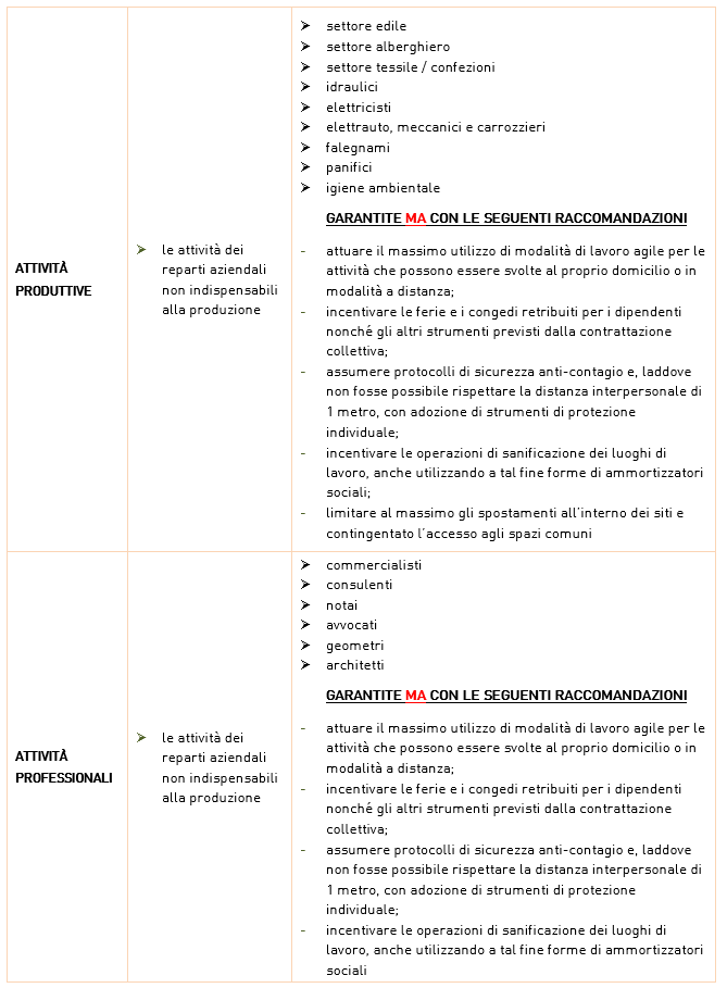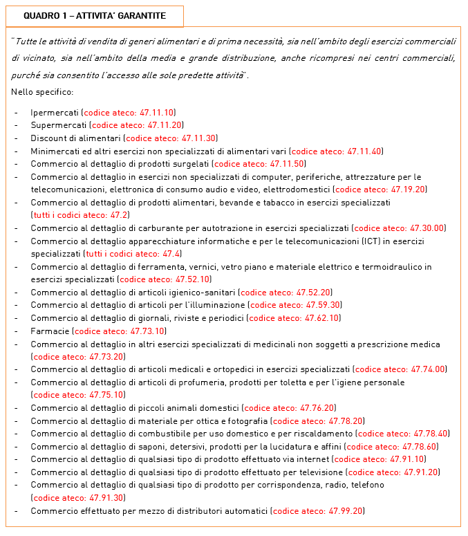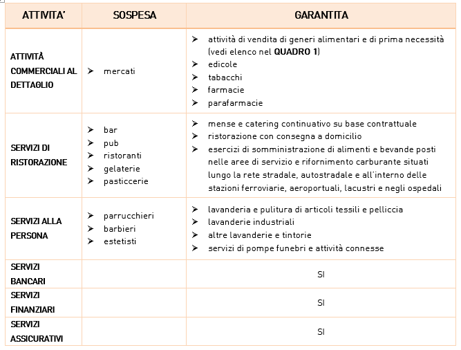 Quali attività sono sospese e quali invece quelle garantite dopo la firma di ieri sera del nuovo decreto?