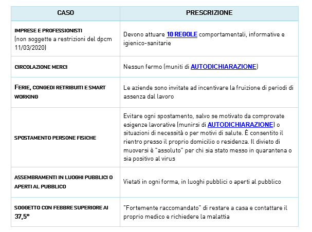 In generale le disposizioni che restano valide fino al 03 aprile 2020 sono: