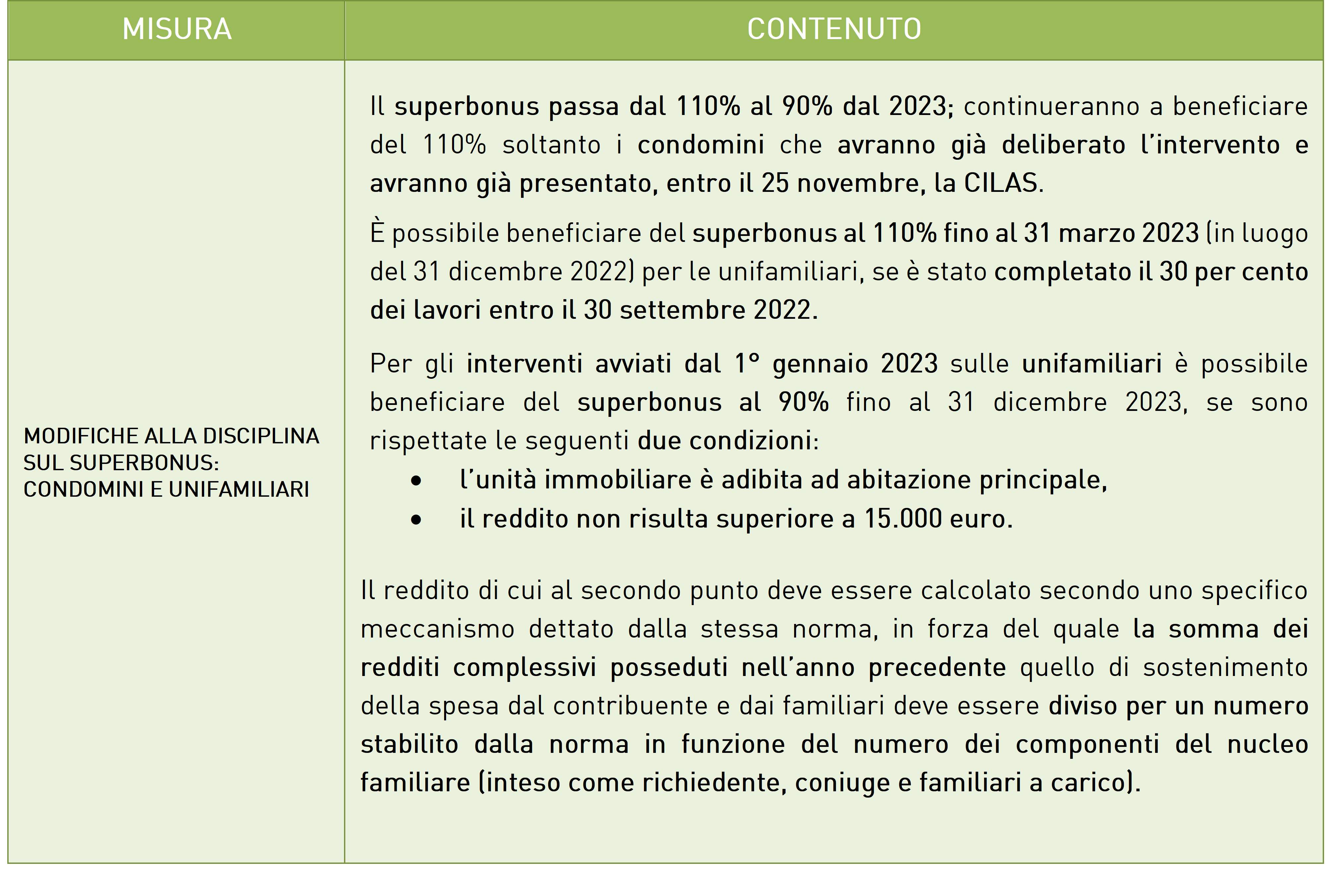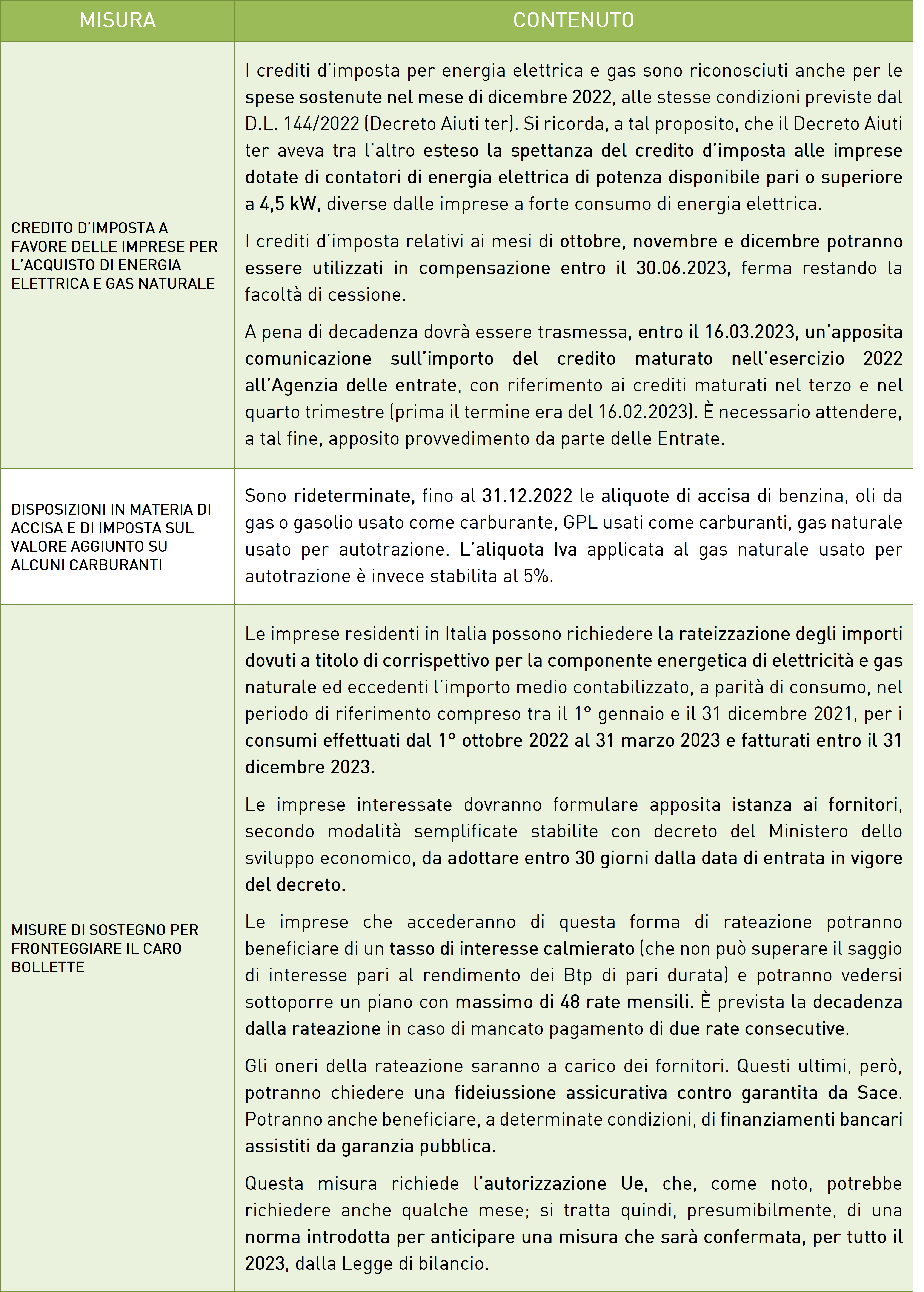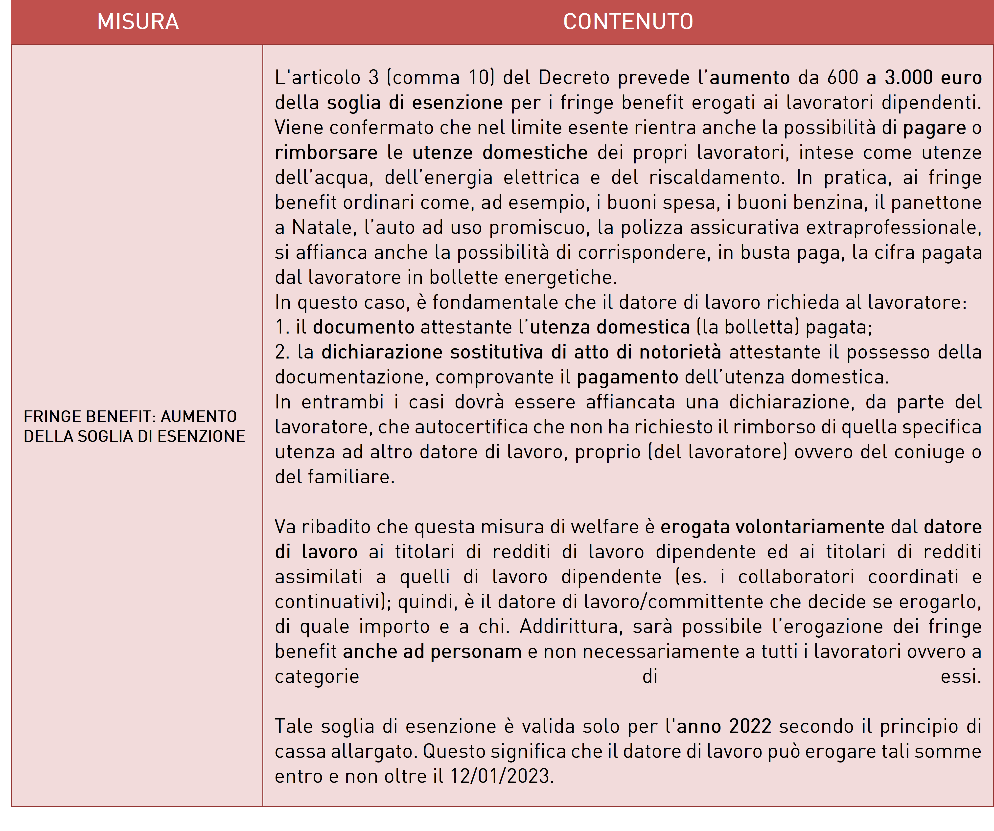 Nel presente articolo riporteremo una tavola di sintesi delle misure ritenute maggiormente significative.