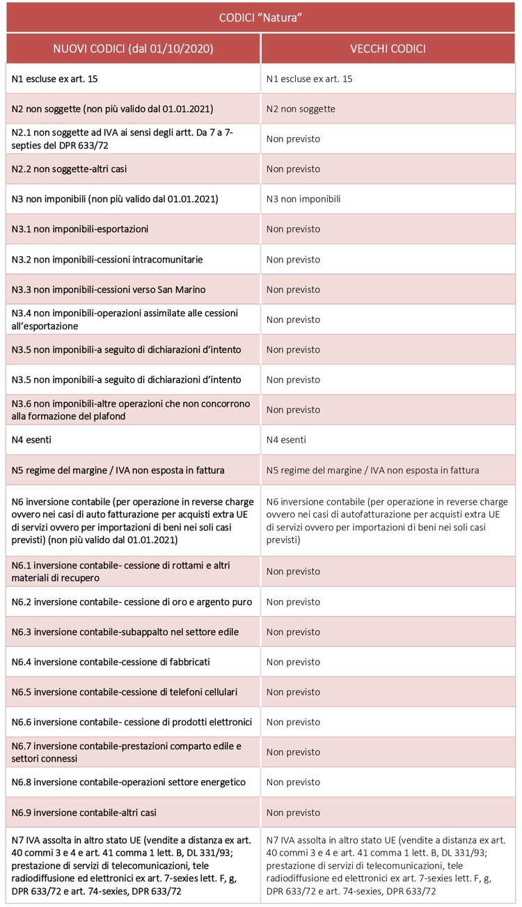 Con riferimento all'inversione contabile, il codice “N6”, che non può più essere utilizzato dal primo gennaio 2021, viene sostituito da nove diversi codici ad ognuno del quale corrisponde una particolare norma che impone l'applicazione del reverse charge nazionale.