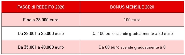 N.B. Il Bonus Irpef non va a sommarsi al bonus Renzi, ma piuttosto si integra a quest’ultimo che resta valido fino al conguaglio 2020 (periodo gennaio-giugno).