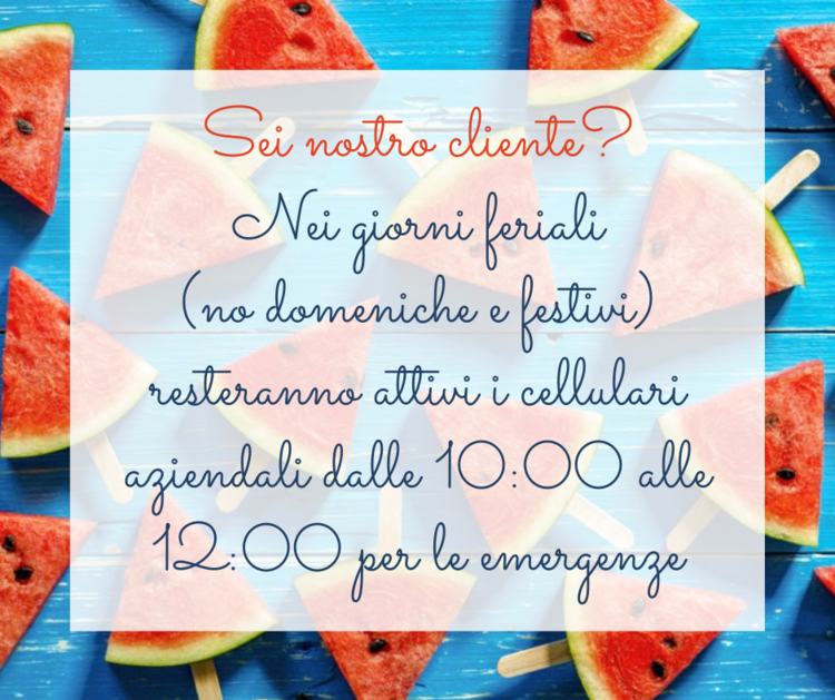 dal 18 al 31 agosto: APERTO dalle 8:30 alle 12:00