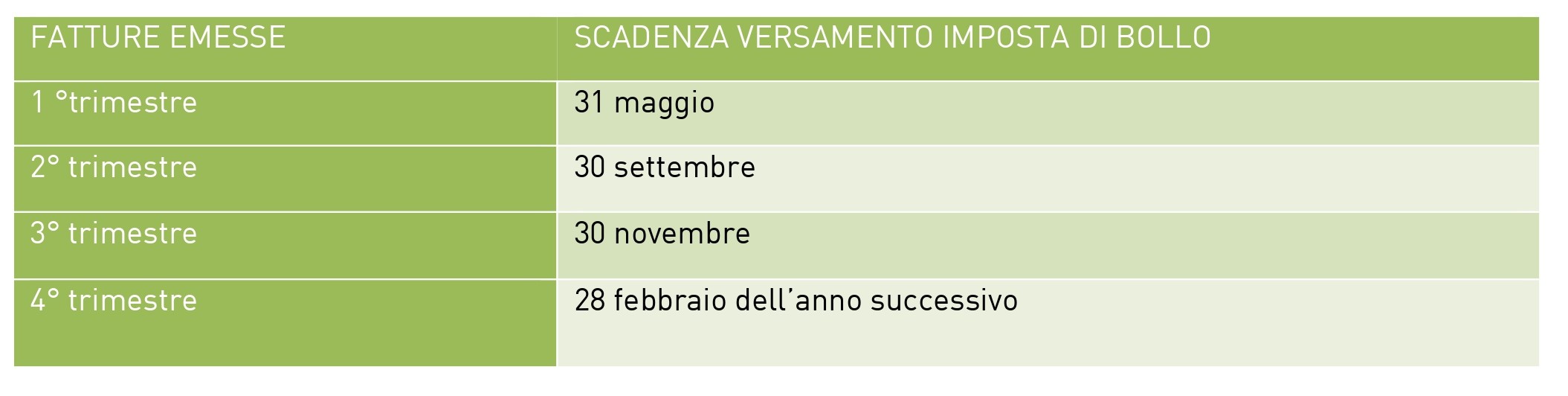 Inoltre, a partire dal 1° gennaio 2023, la legge ha previsto nuove scadenze di versamento dell’imposta di bollo tramite F24, per facilitare le aziende che emettono un numero limitato di fatture durante l’anno.