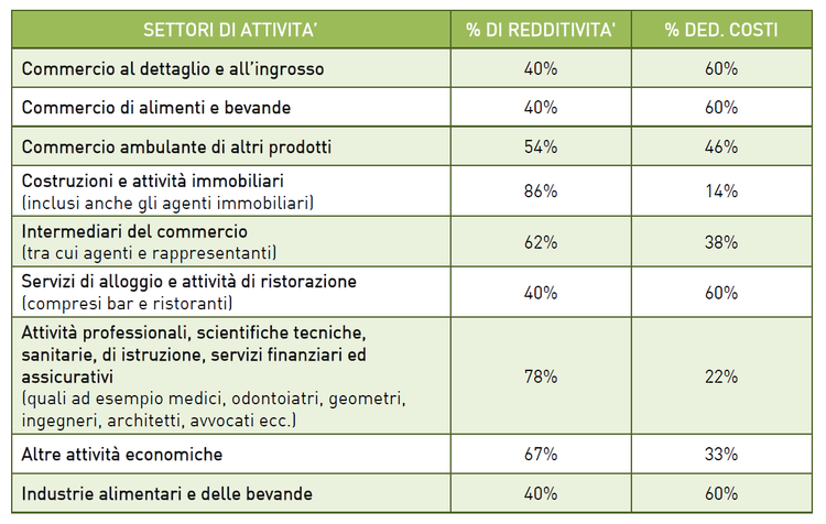 1) TABELLA PERCENTUALE DI REDDITIVITA'