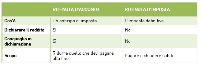 Quali sono le differenze tra i due principali tipi di ritenute alla fonte?