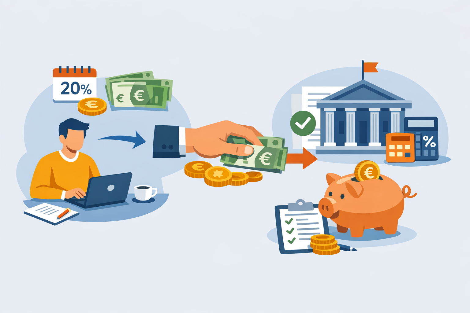 Esempio: se guadagni 1.000 € da una prestazione e ti trattengono 200 € di ritenuta d’acconto, ricevi 800 € netti. Quando farai la dichiarazione, potrai usare quei 200 € come credito d’imposta e ridurre quello che devi pagare allo Stato.