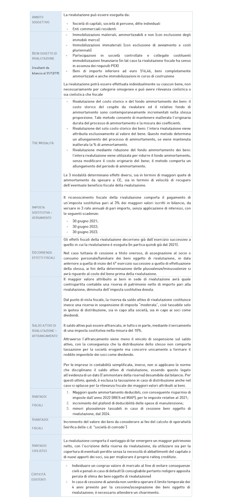 viene meno l’obbligo di rivalutare per “categorie omogenee”, ovvero è ora possibile procedere con la rivalutazione distintamente per ciascun bene, lasciando quindi massima flessibilità.