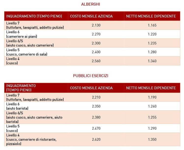 Di seguito alcune simulazioni riferite ad un dipendente stagionale a tempo pieno assunto per un periodo di 4 mesi. Ricordiamo però che il costo di ogni dipendente è soggetto a molteplici fattori.